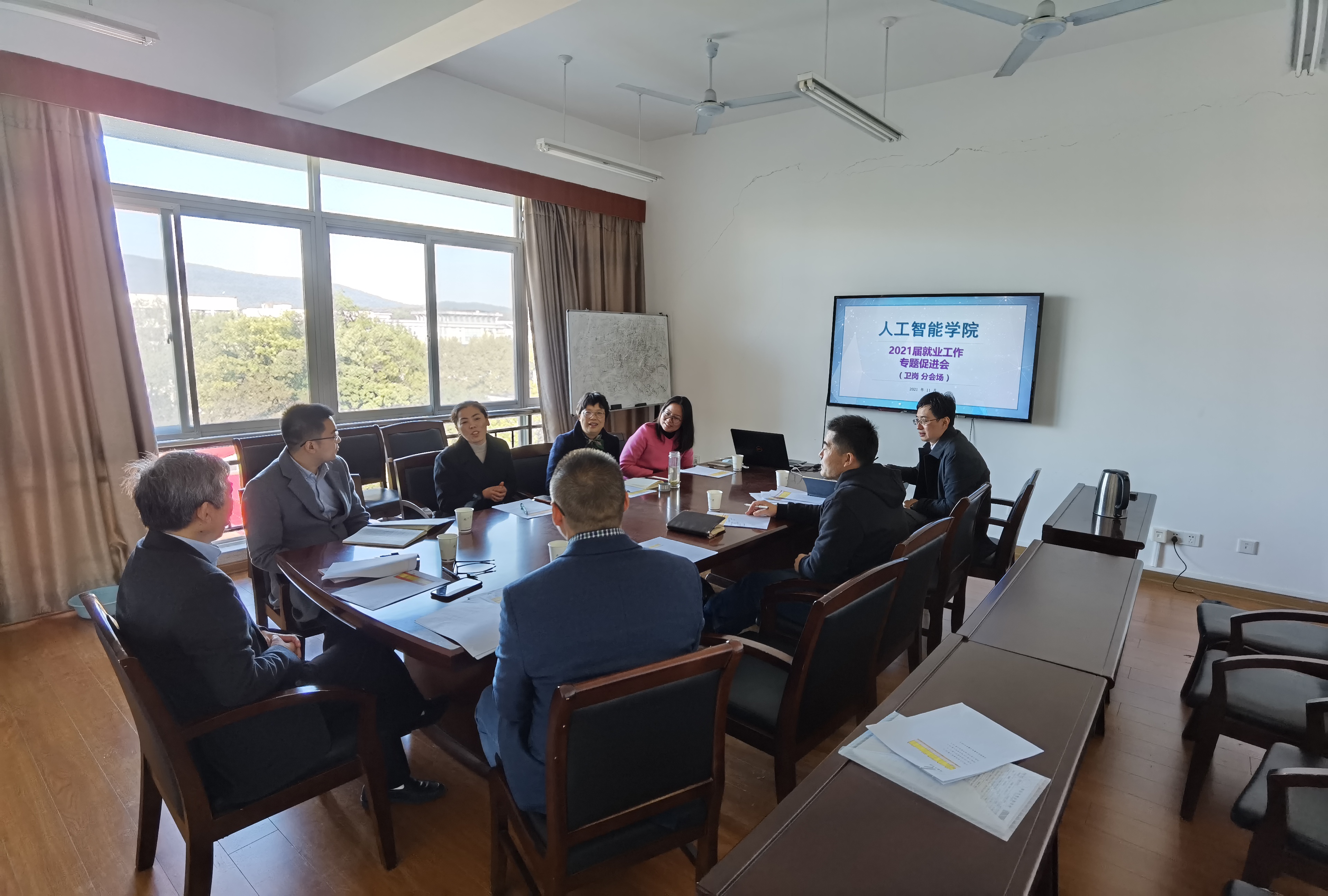 院长徐焕良、党委副书记卢伟、辅导员湛斌、2021届计算机科学与技术、网络工程专业班主任老师在卫岗校区参加会议,此外特邀学工处就业办主任吕一雷、田雨老师莅临指导工作,会议由卢伟主持。党委书记沈明霞、学院学工办主任兼团委书记章棋、2021届电子信息科学与技术、自动化专业班主任老师在浦口校区参加会议,会议由章棋主持。
