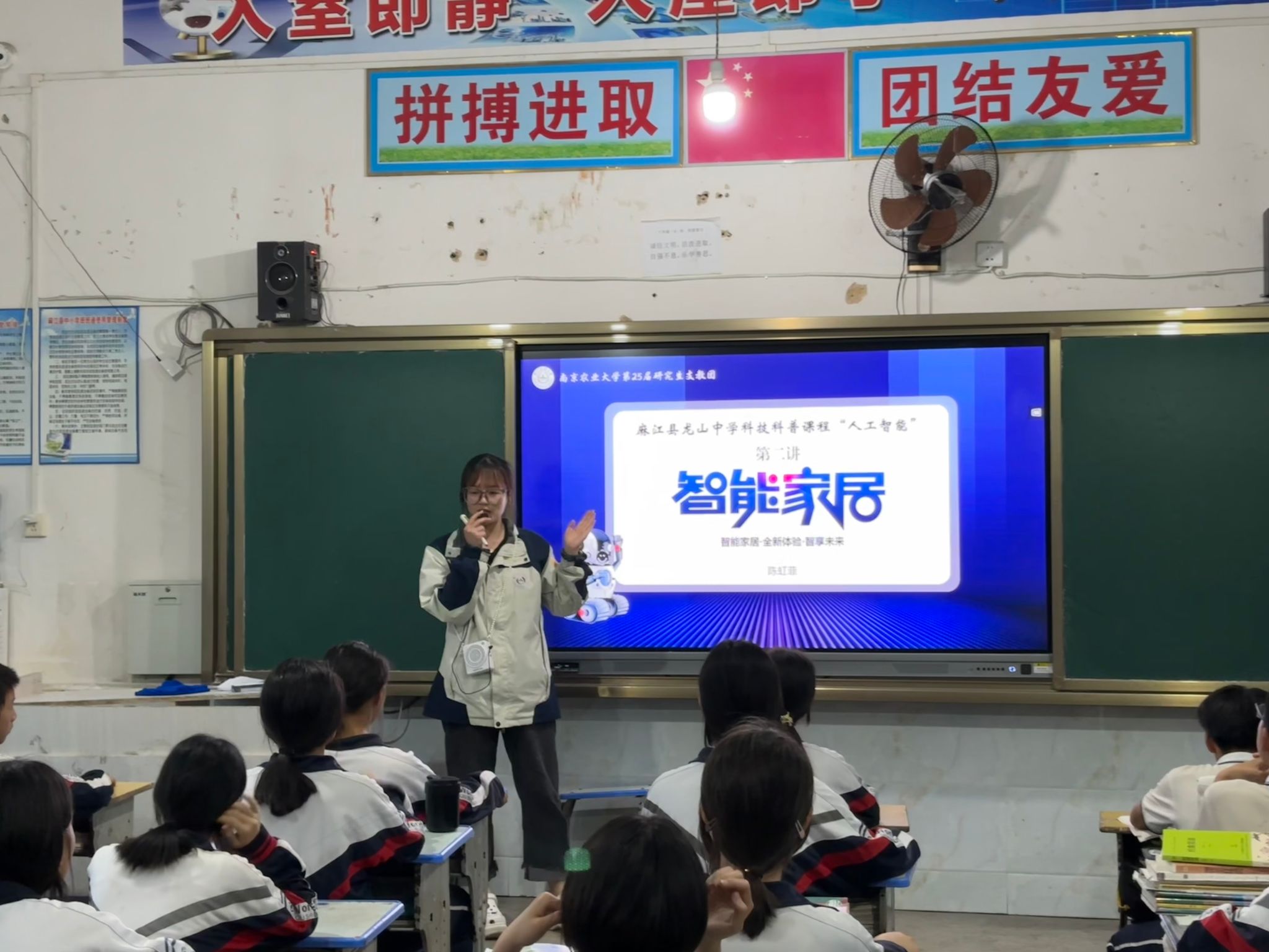 为点燃当地青少年对科学的热情,陈虹菲依托自身“人工智能”相关专业优势,在麻江县龙山中学开讲系列人工智能科普课程。