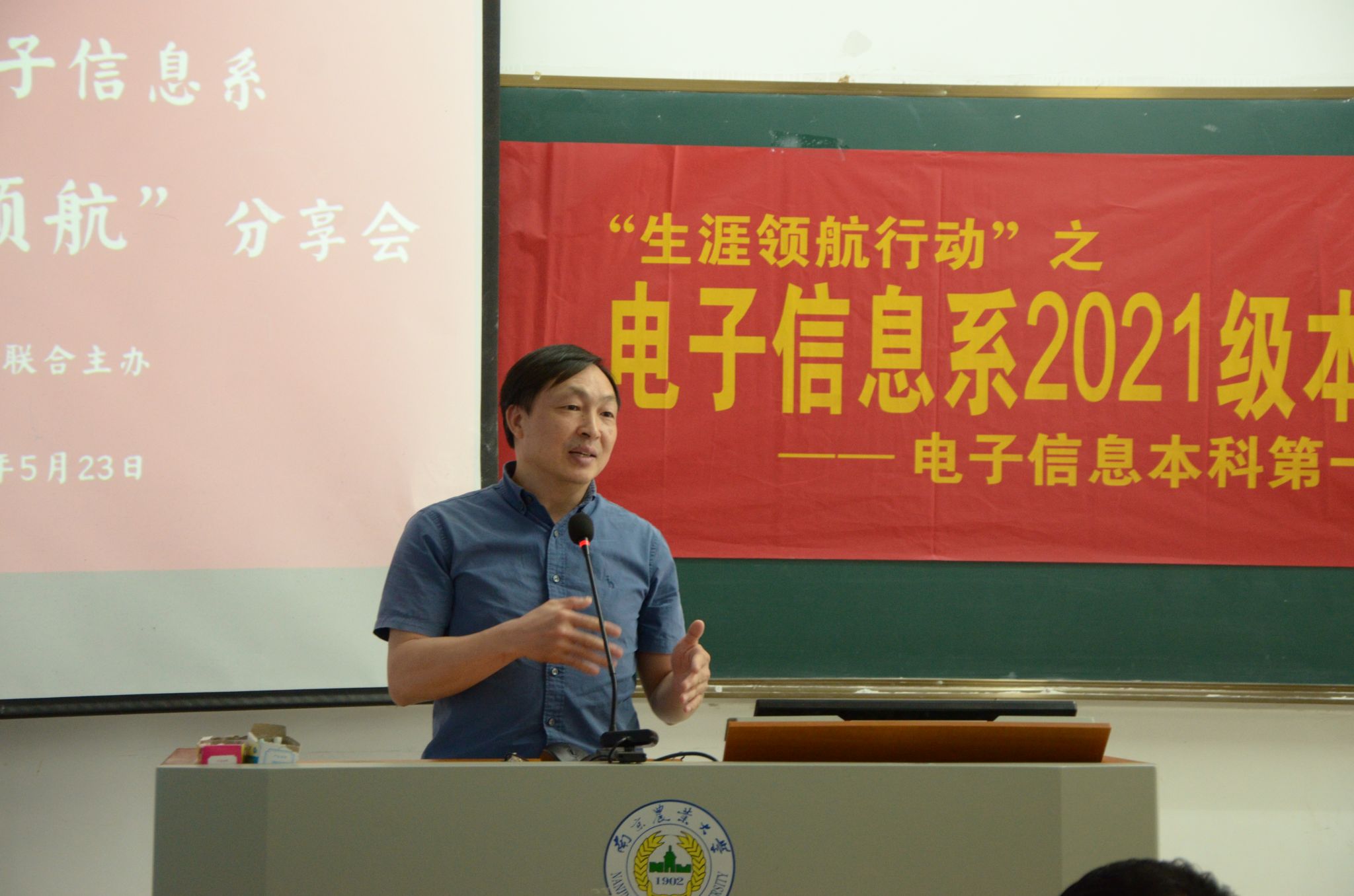 5月23日上午,“生涯领航行动”之2021级本科生“朋辈领航”分享会于汇贤楼C201教室成功举办,本次活动由电子信息科学与技术本科生第一党支部、电子信息科学与技术本科生第二党支部联合主办。电子信息系主任李林、学工办主任(2021级本科生辅导员)湛斌,电子信息系大四年级学生代表、2021级全体本科生参与此次活动。