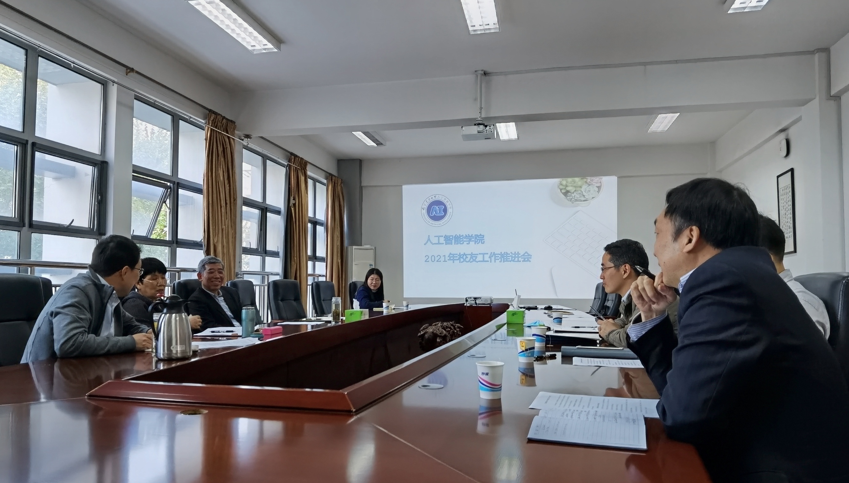 2021年4月19日下午,中文色情 在浦口校区育贤楼C302会议室召开了2021年度学院校友工作推进会,中文色情 院长徐焕良、副院长刘杨、书记助理王敏、电子信息系主任李林、自动化系主任刘璎瑛、计算机系副主任陆明洲、计算机系副主任胡滨、校友工作秘书湛斌参加了此次会议,会议由学院党委副书记(主持工作)沈明霞主持。