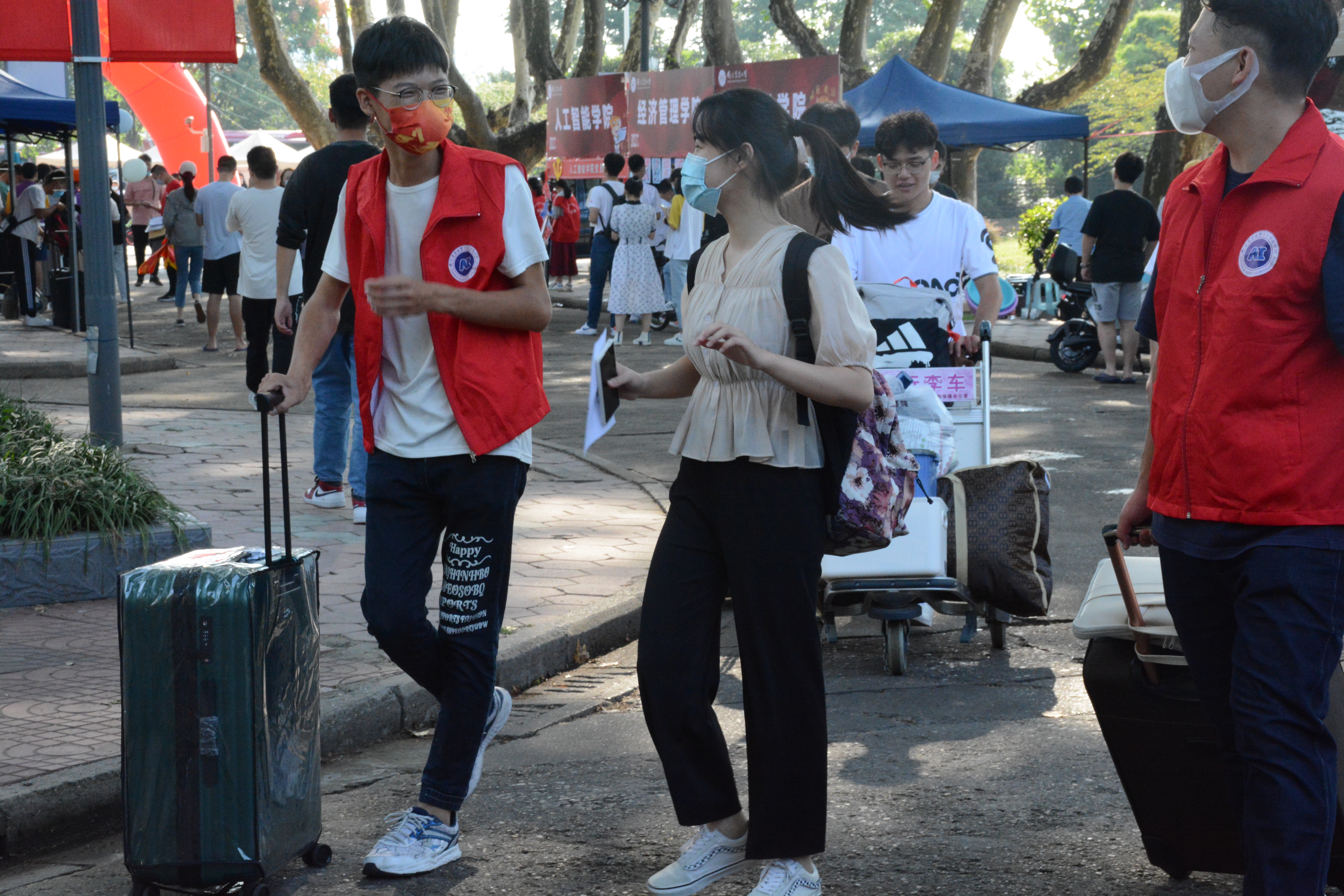 学院党委副书记(主持工作)沈明霞、党委副书记卢伟、副院长刘杨,以及相关部门负责同志来到新生报到现场慰问工作人员、指导迎新工作。在每个迎新点详细了解迎新工作流程和进展,亲切慰问各学院迎新接待工作人员和志愿者,对他们的辛勤付出给予了充分肯定,并叮嘱要做好自身防护,强调要在做好疫情防控的前提下,尽心尽力做好服务工作,确保每一位新生都能及时、顺利报到。沈明霞等人还来到学生宿舍与新生亲切交谈,介绍学校相关情况,了解新生实际需求,为广大新生开启崭新的大学生活送上美好祝愿。