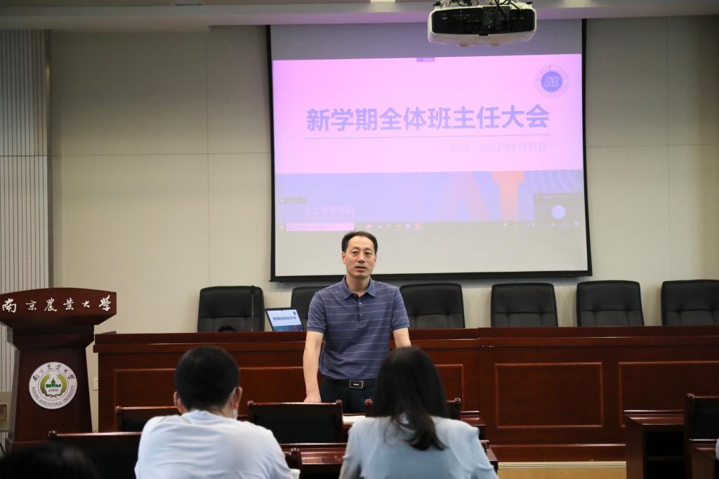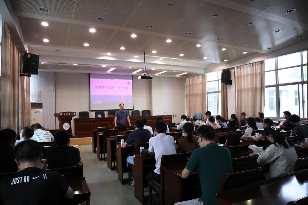 在浦口校区育贤楼C502会议室召开了新学期班主任工作会议,腾讯会议线上双校区同步进行。院党委书记田永超,全体班主任、辅导员参加会议,会议由田永超主持。