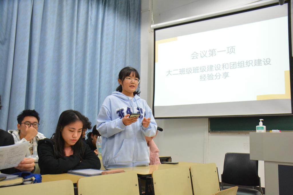 于汇贤楼教室开展新学期第一次团干之家主题会议。学院本科生辅导员魏宇宁,大一、大二各班班委出席本次会议。