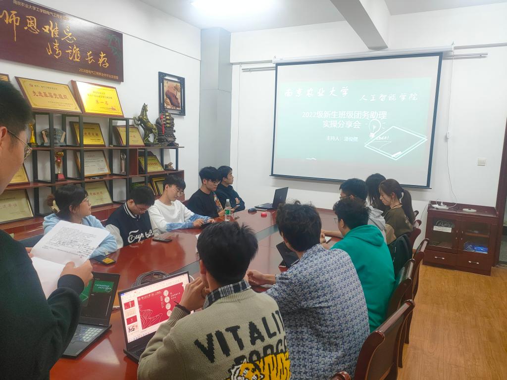会议开始,计科221班团助夏烨和计科222班团助司恒恺首先分享了如何增加新生的归属感、工作开展过程中遇到的主要问题和应对措施等。随后数据221班团助李源和数据222班团助罗钰晟展示了工作日程以及与新生的互动经历和在此过程中的问题、反思和心得。紧接着,人工智能221班团助李志远、人工智能222班团助郭竞夷着重介绍了近期的工作进程和活动开展情况。最后,电信类2201班团助杨佳、2202班团助徐聪、2203班团助汪叶鑫、2204班团助华婧伊、2205班团助韩晓飞、2206班团助宋文豪、2207班团助茆子阳进一步对工作总结、工作经验、工作问题与工作展望进行了详细的叙述与补充。会议过程中,多位团助提到了对新生进行大学生活与学习规划的辅导,并对专业培养方案进行了详细讲解。
