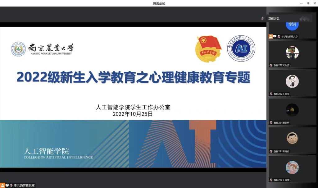 2022级新生带来题为《存在,就是向世界伸出你的手——学会在关系中成长》的心理健康教育讲座。本场讲座采用线上直播的方式,新生辅导员李洪老师主持,全体新生参加。