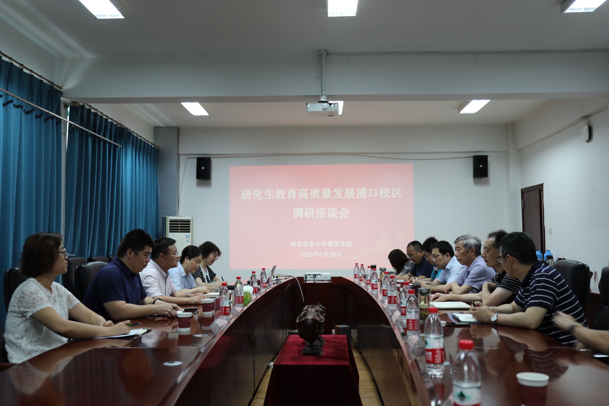 开展研究生教育高质量发展调研,座谈会在浦口校区育贤楼C302举行。研究生院常务副院长、学位办主任吴巨友、招生办主任倪丹梅、综合办主任孙国成、培养办秘书郭晓鹏、学院党委书记田永超、院长徐焕良、副书记吕一雷、科研副院长刘杨、教学副院长陆明洲,以及学院部分教师代表出席了座谈会。座谈会由徐焕良主持。