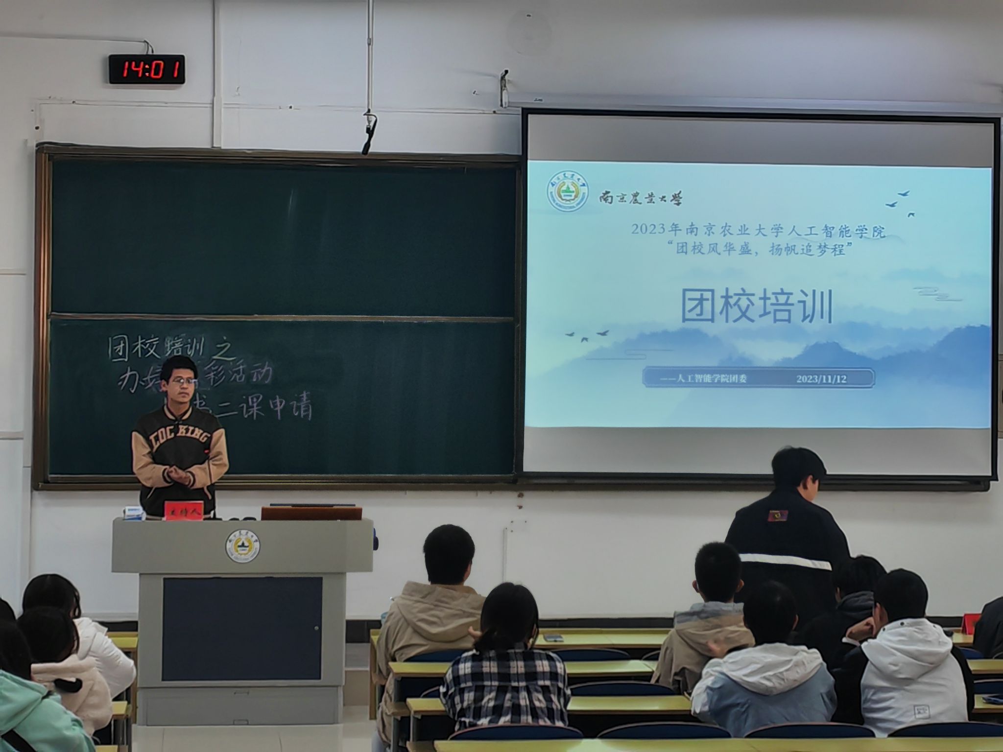 分党校、学生团委、学生会、全媒体中心、AI工坊等学生组织的百余名团干部及团员青年参加培训。