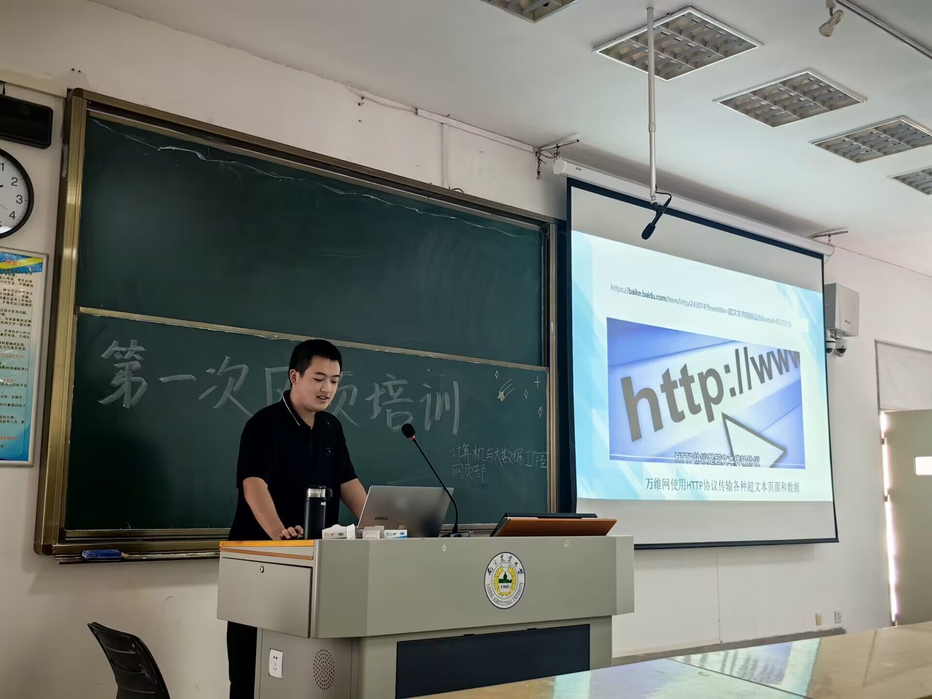 本学期的系列培训每个主题内容分配两课时,针对计算机系专业核心的算法、网页、软件能力开展,具体包括Java Web、Html、二分算法至网页标签、Jupyter Notebook交互式工具及数据结构算法等内容。各授课主讲人以PPT为载体,图文并茂地讲解了培训的相关知识,令在场同学受益颇深。