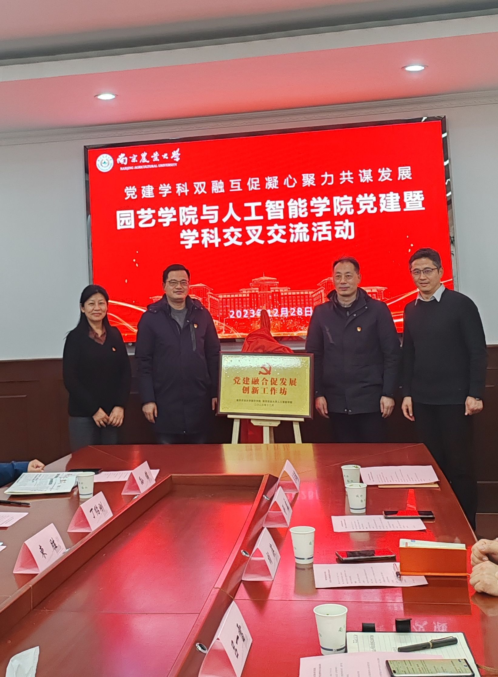 党委和园艺学院党委在会上成功举行了“党建融合促发展创新工作坊”的揭牌仪式。