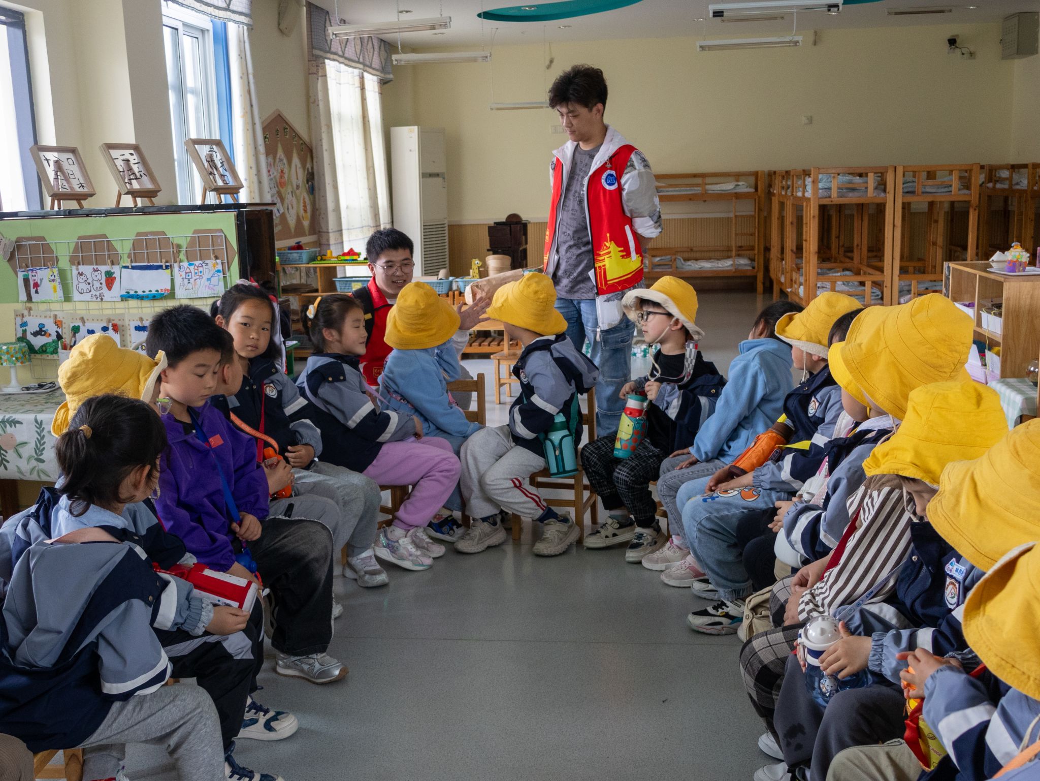 。他们像探险家一样,充满好奇地打量着校园的一草一木,感受着春天的气息。志愿者们耐心地为他们讲解学校的各种建筑与设施,与大学生哥哥姐姐互动时,大学里的自然环境、人文环境、各类场馆都成为了幼儿园同学们的社会实践基地。