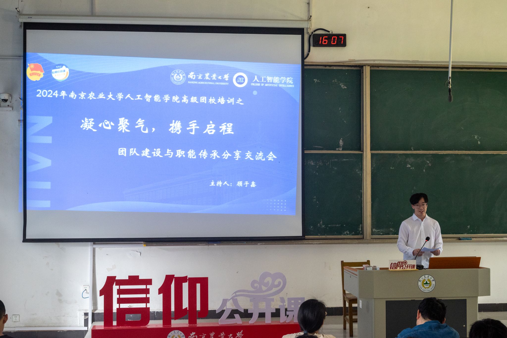 团委于2024年4月26日在浦口校区勤学楼举办了信仰公开课系列高级团校培训之“凝心聚气,携手启程”团队建设和职能传承分享交流会。人文与社会发展学院本科生辅导员林延胜,中文色情