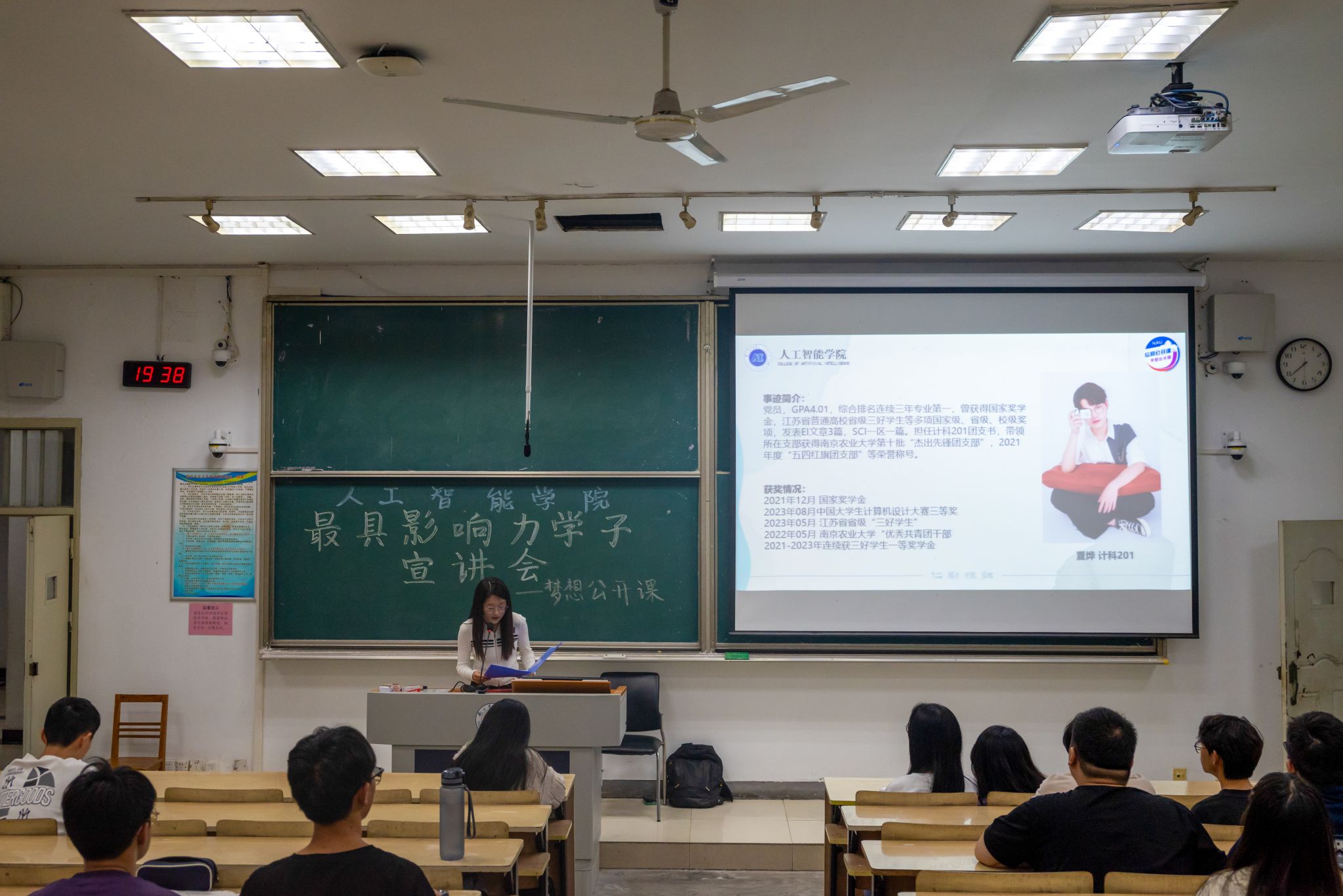 最具影响力学子——陈雨昕(电信201班)、夏烨(计科201班)进行经验分享,学院100余名学生参加了本次活动。