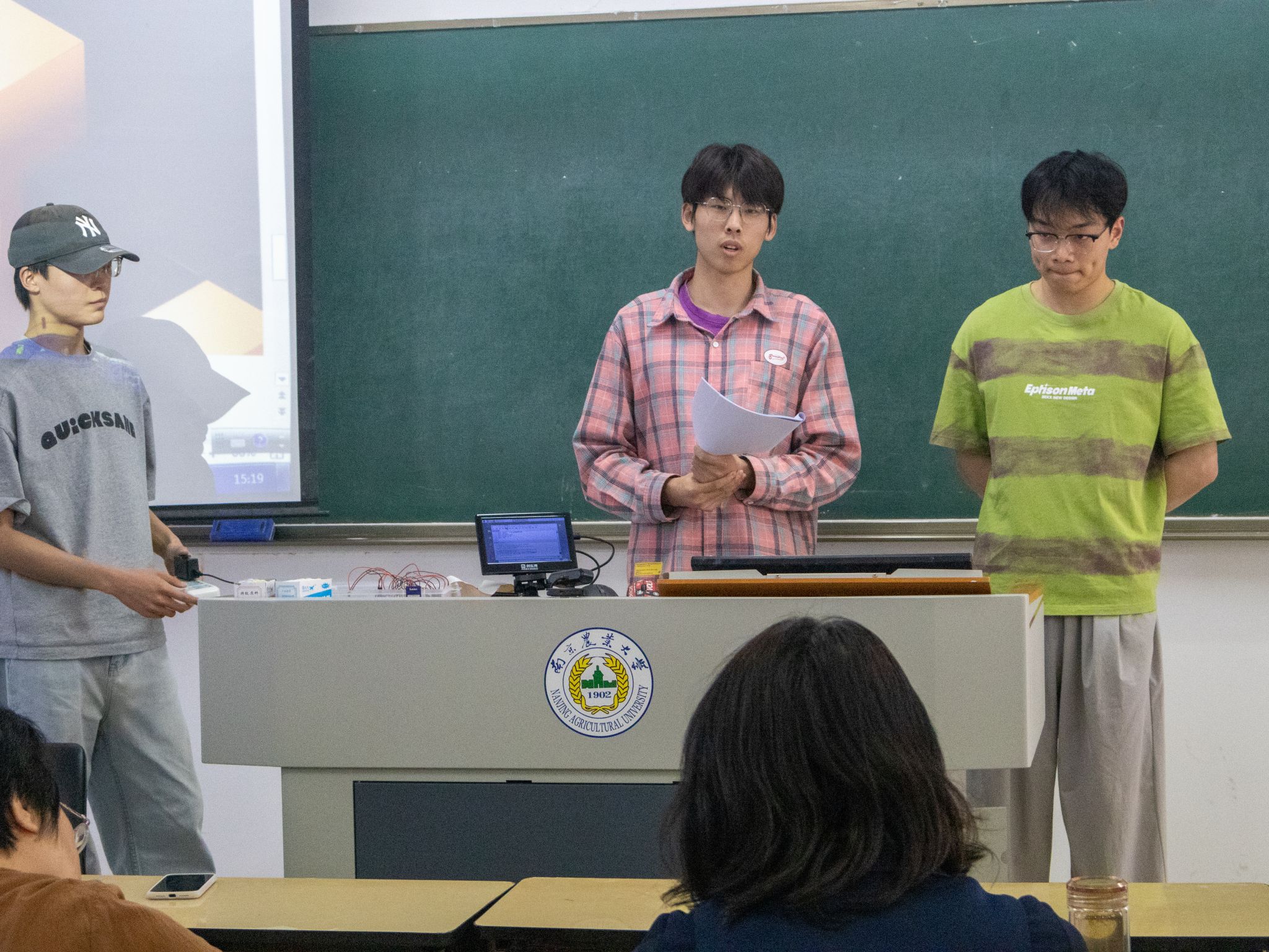 答辩现场紧张有序,答辩项目丰富多样,其中《基于Raspberry Pi 的田园环境监测与灌溉控制系统》展示了现代信息技术与农业自动化技术的智能解决方案;《云翼智巡smartguard:养鸡场全维智能监测与健康干预系统》展示了先进信息技术与养殖业需求的综合性智能系统,可以为鸡舍创造一个良好的环境;《基于树莓派的智能家居系统》能够实时监测室内温度、湿度、烟雾等多种环境参数,并通过手机应用进行远程控制和报警,进一步增强了学生对物联网和智能家居领域的理解。