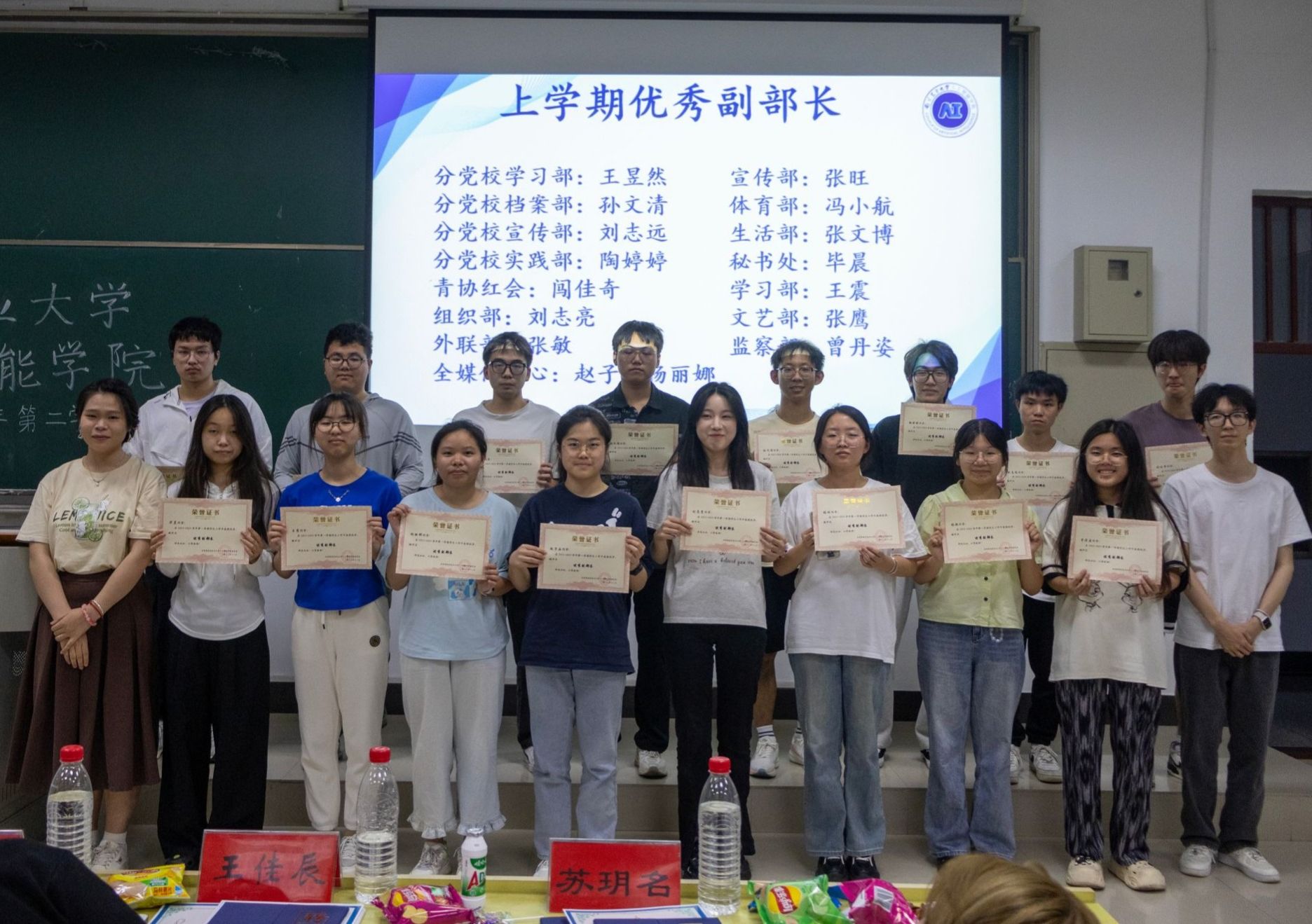 接着,会议主持人宣读了本学年的优秀部门、优秀干事以及优秀部长名单,并为学生组织全体成员颁发了2023-2024学年的聘书。现场气氛热烈,掌声不断,参会代表都为学院在“引领青年,凝聚青年,服务青年”道路上所取得成绩而感到由衷地自豪。