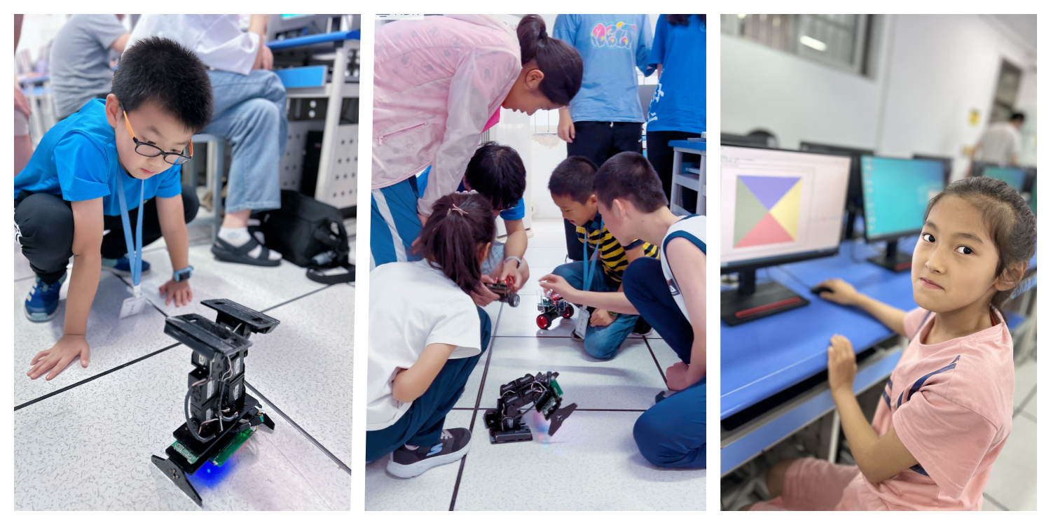 经过为期五天的学习和探索,小编程爱好者们在老师们的指导下,探索了程序设计的奥秘,体验了编程的乐趣,收获了无限的乐趣和智慧。中国机器人大赛实践科创团队也应邀来到夏令营现场,展示他们研发的机器人作品,让孩子们近距离接触科技的前沿。