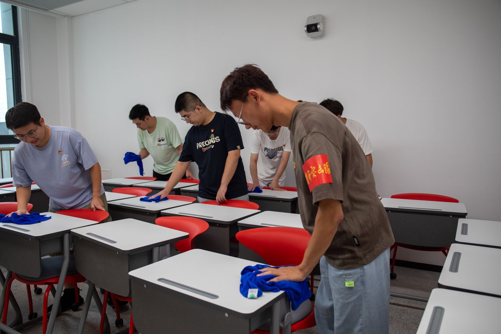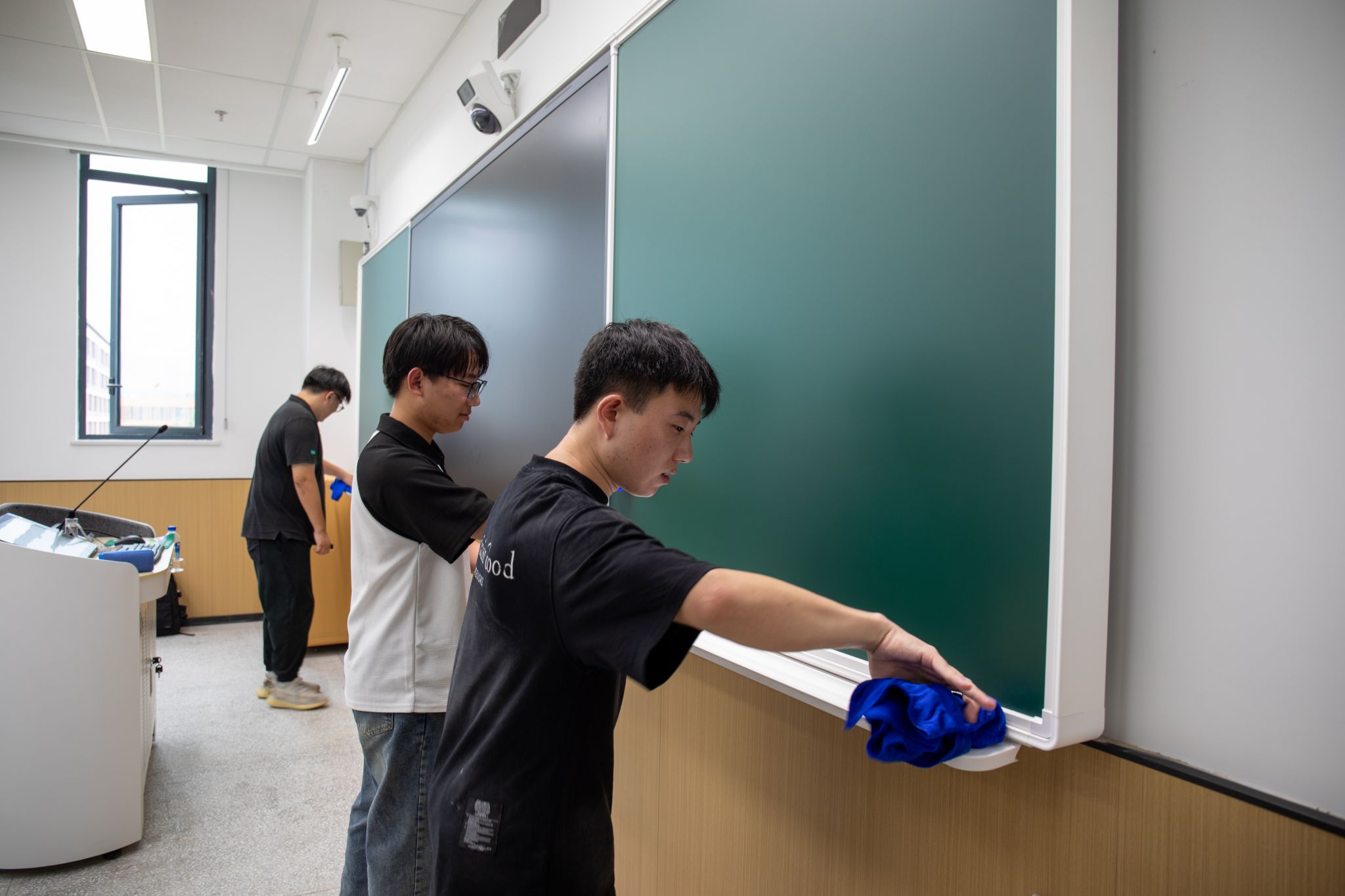 学院师生以党支部为单位领取工具,分别前往公共教学楼D面共28间教室开展大扫除工作。从桌椅、门窗再到黑板讲台,各支部组织有序、分工明确,充分发扬“不怕脏、不怕苦、不怕累”的精神,对教室每个角落都进行了全面细致地整理和清扫。活动结束后,教室焕然一新,为学校师生营造了舒适整洁、卫生有序的上课环境,大家纷纷表示,要在身体力行的劳动中强化实践能力,锤炼敢于担当的意志品格。