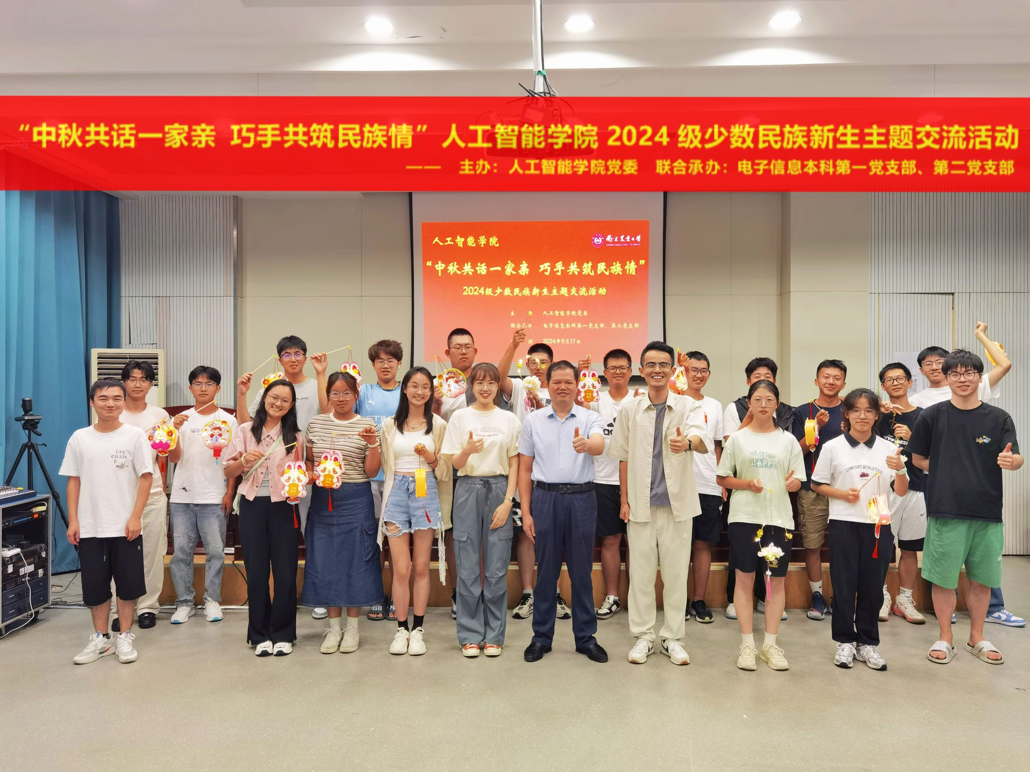 旨在进一步加强对院内少数民族学生思想、学习、生活的全方面关心,帮助学生铸牢中华民族共同体意识,9月17日晚,巧借中秋佳节之机,学院于浦口校区育贤楼C502特别策划举办“中秋共话一家亲 巧手共筑民族情”2024级少数民族新生主题交流活动,此次活动由中文色情