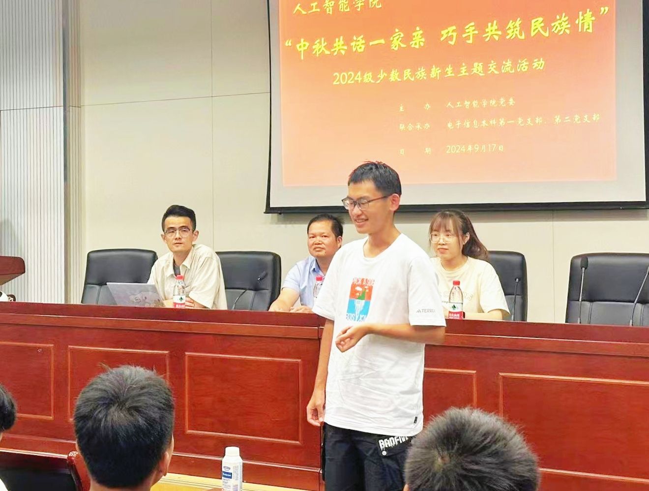 学工办主任湛斌、2024级本科生辅导员杨荣、专项工作辅导员于佳琪,及学院2024级全体少数民族新生参与活动。活动由于佳琪主持。