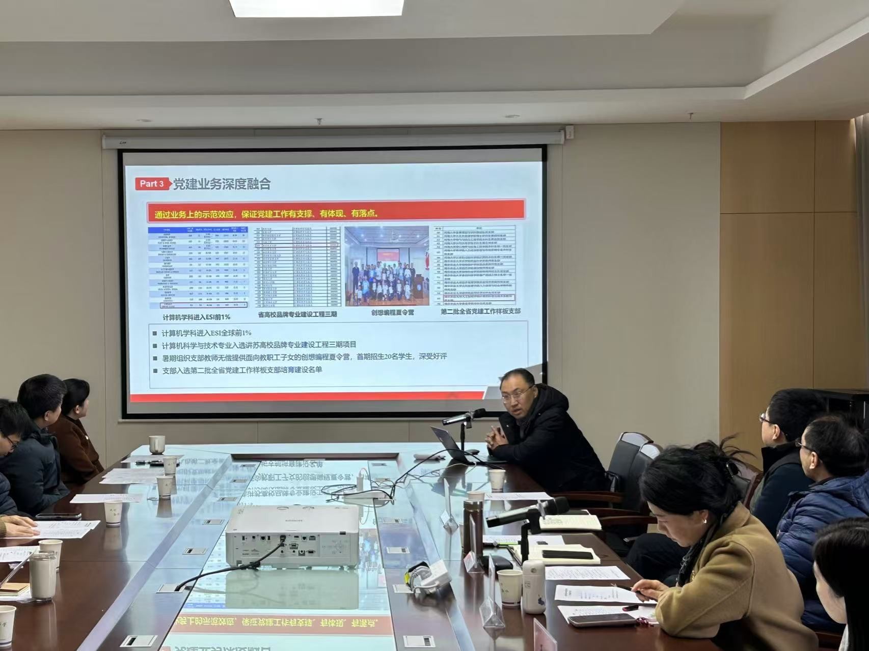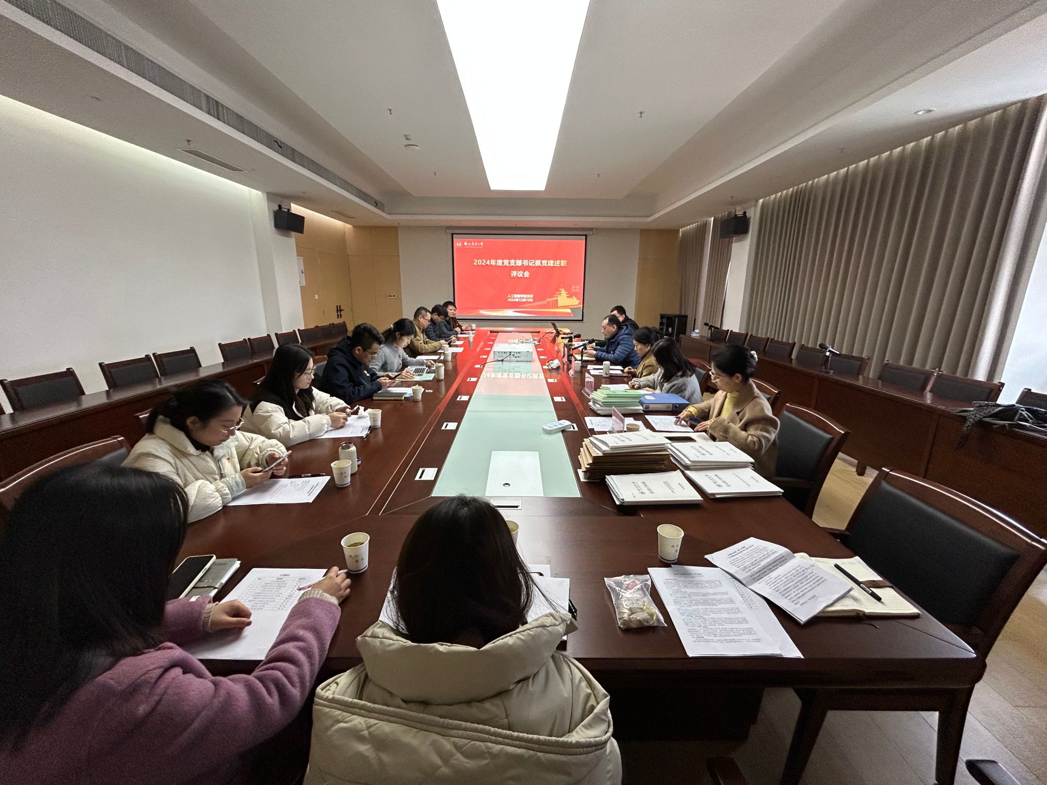 党委在学院楼A863会议室召开2024年度党支部书记抓党建述职评议会。校党委组织部副部长陈洁,第三督查组成员王雯、夏丽,学院党委书记田永超,党委副书记吕一雷,党委委员胡滨、舒磊,全体党支部书记参加了会议。会议由田永超主持。