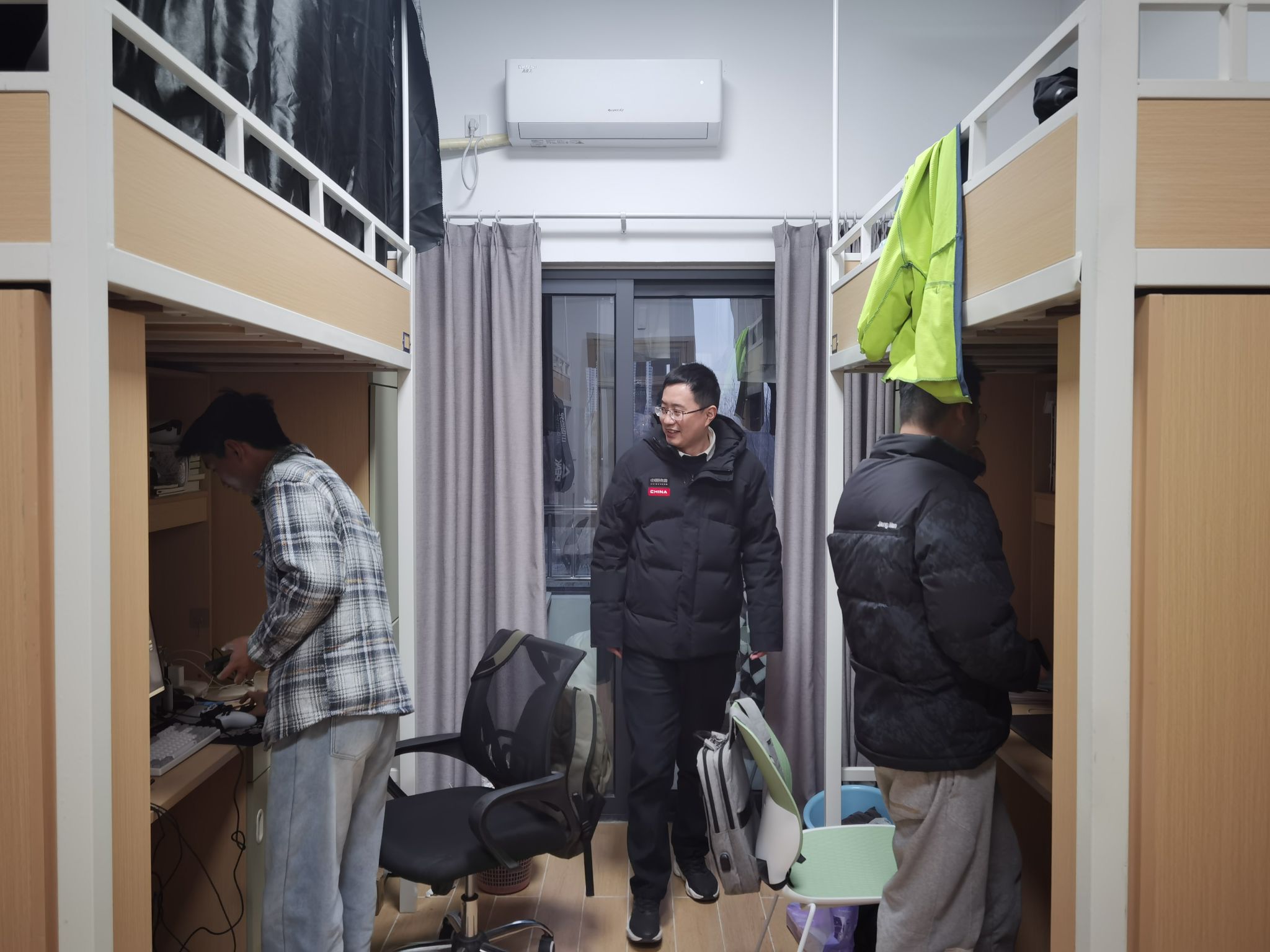 党委副书记吕一雷、学工办主任湛斌、本科生辅导员于佳琪深入学生宿舍,开展走访慰问活动,为同学们送去冬日的温暖与关怀。