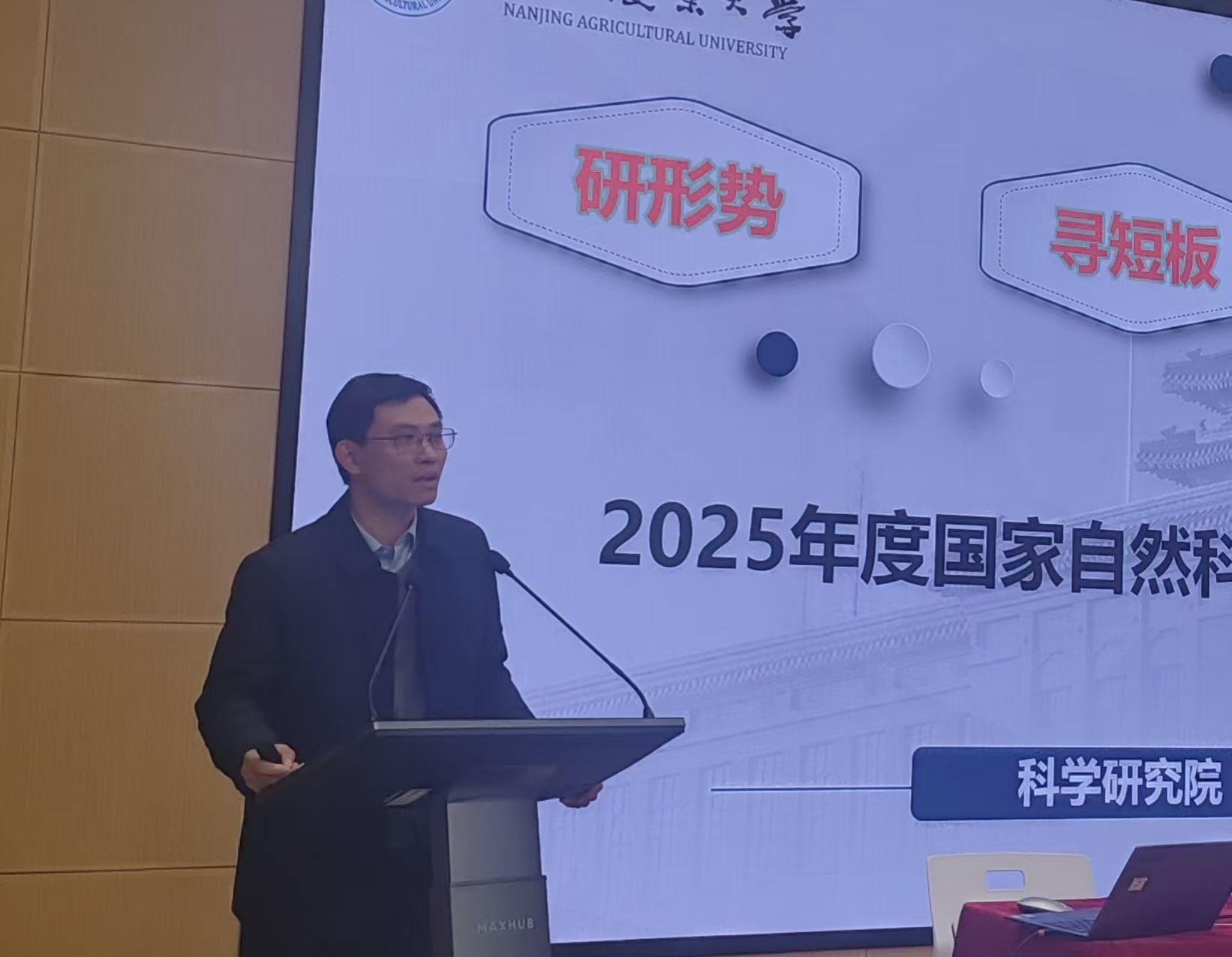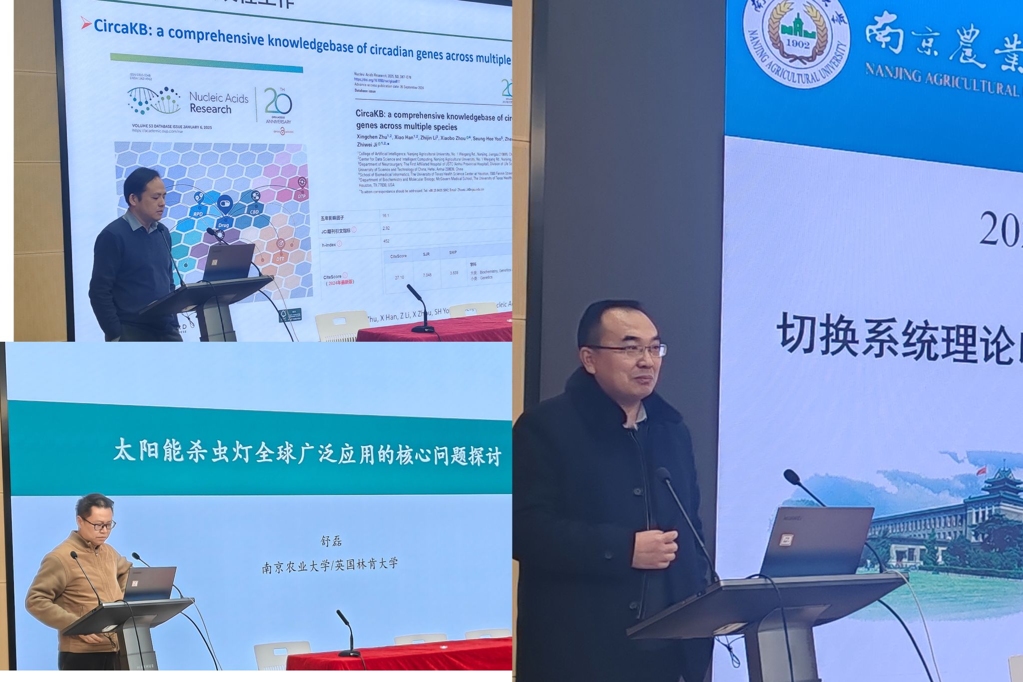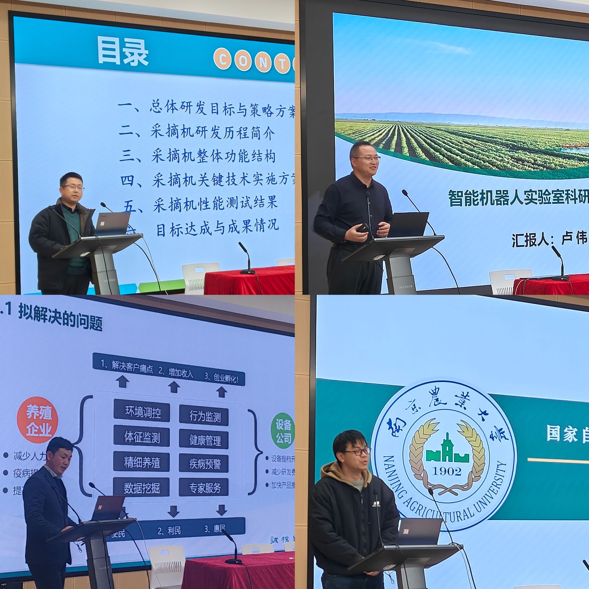 院内学术沙龙环节,朱一亨博士、卢伟教授、丁永前教授、舒磊教授、计智伟教授、林相泽教授、刘龙申副教授等7位老师进行了主旨工作汇报,内容涵盖青年基金申请心得智能机器人研究进展、智能烟叶采摘机的研发、太阳能杀虫灯应用的核心问题探讨、切花系统理论以及智能装备与控制的研究进展以及农业农村部养殖装备重点实验室年度工作。
