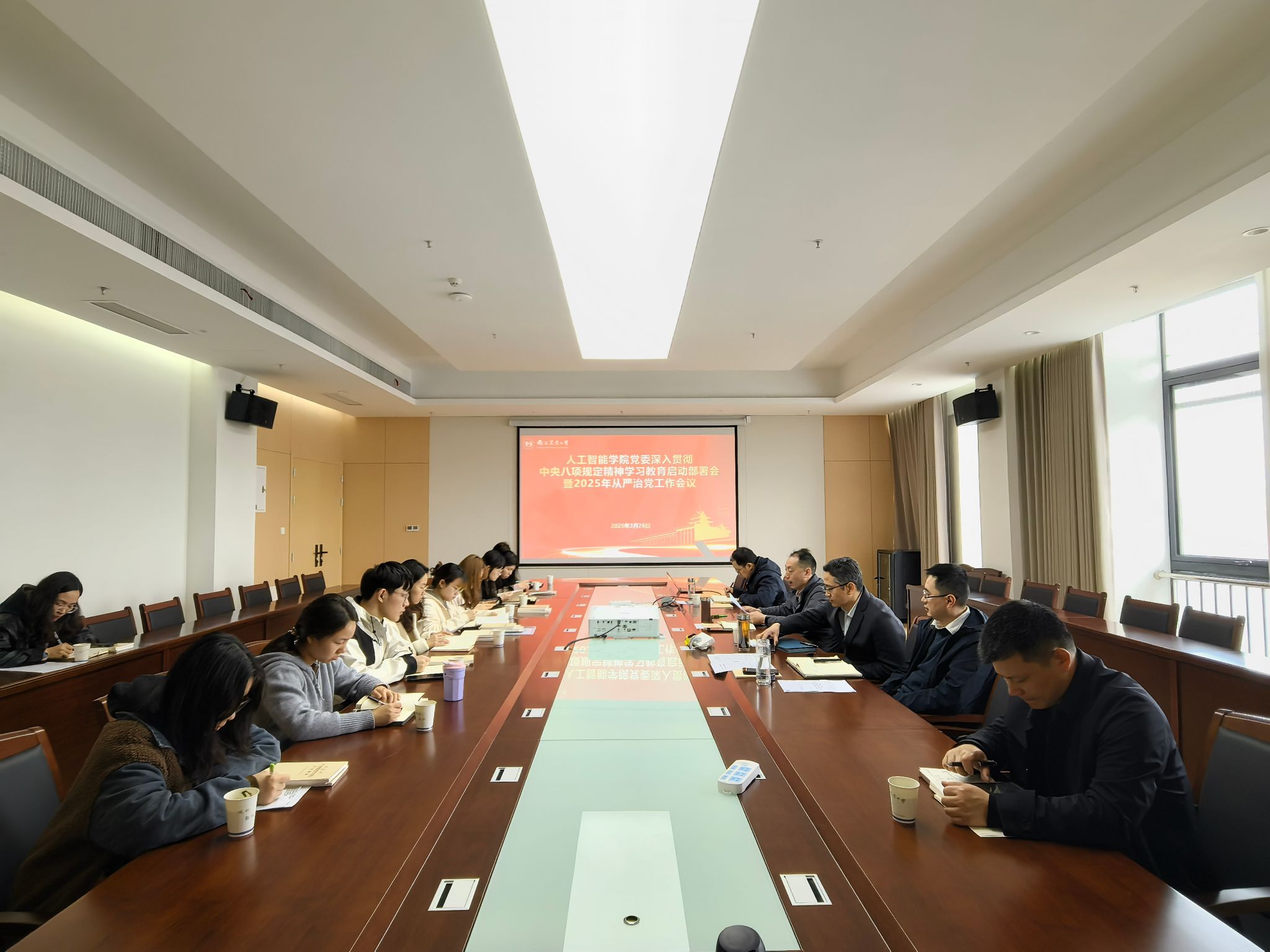党委在滨江校区学院楼A863召开深入贯彻中央八项规定精神学习教育启动部署会暨2025年全面从严治党工作会议,学院党委书记田永超、副院长(主持工作)陆明洲、党委副书记吕一雷、副院长刘杨,党委委员,全体教师及学生党支部书记,党务秘书、组织员参加会议。会议由吕一雷主持。