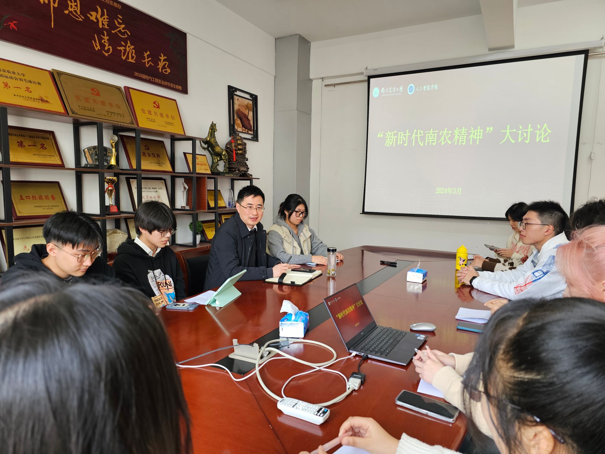 “新时代南农精神”大讨论实施方案》,3月以来持续扎实开展“新时代南农精神”大讨论第一阶段集中研讨工作,采取集中、分组、研讨会、座谈会、经验交流、实践活动等多种形式,组织师生员工开展广泛研讨。学院党委书记田永超、副院长(主持工作)陆明洲、党委副书记吕一雷、副院长刘杨下沉到党支部参与研讨。