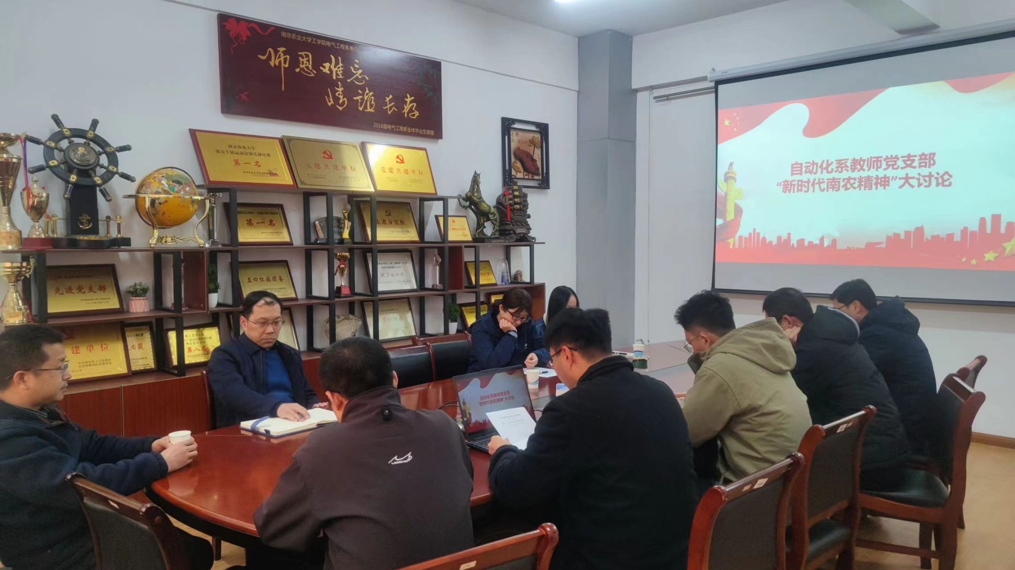 3月26日下午,自动化系教师党支部在育贤楼B311召开“新时代南农精神”大讨论。学院副院长刘杨,自动化系党支部成员、教师参加会议。经过热烈地讨论和学习,支部成员一致认为以后要以“新时代南农精神”大讨论为契机,坚定信心、同心同德,埋头苦干、奋勇前进,努力做好自身的教学、科研工作,奋力答好“强国建设,南农何为”的时代命题。