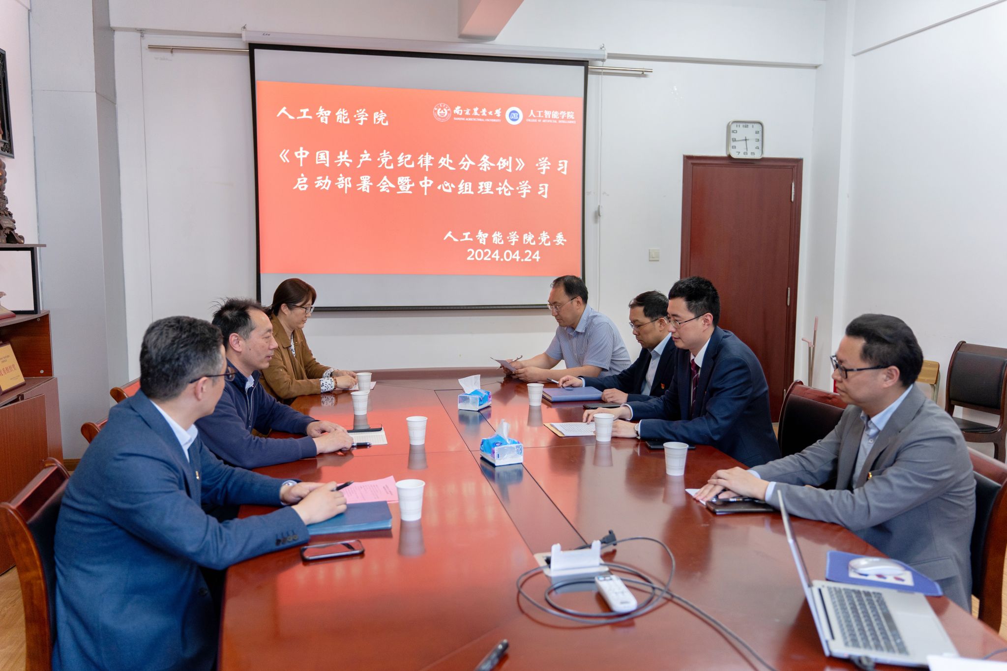 党委召开党纪学习教育启动部署会暨中心组理论学习。学院新一届党委委员、党支部书记代表参加会议,会议由党委书记田永超主持。