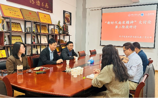 在热烈的讨论中,与会党员同志纷纷发言,分享了自己在教学、科研中的深刻体会。围绕“如何将‘新时代南农精神’融入办学治校理念”,“如何使‘新时代南农精神’在教育管理服务全过程中发挥积极作用”等讨论主题,与会党员同志们达成了共识:要将“新时代南农精神”作为推动学校发展的强大动力,不断深化教育教学改革,提升科研创新能力,以实际行动践行“新时代南农精神”,致力于培养更多具有创新精神和实践能力的优秀人才。与会教师还就如何在人工智能教育中强化南农精神的传承进行了深入的探讨。