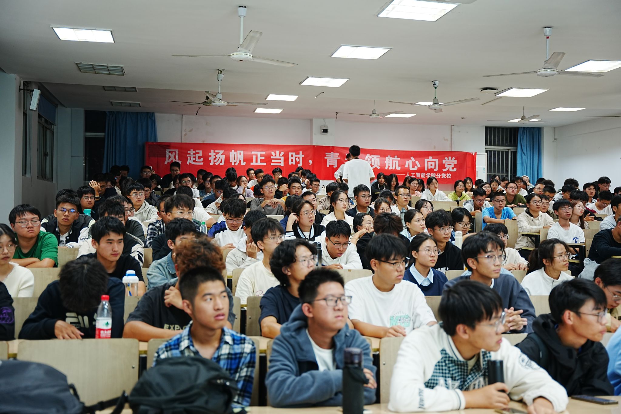 入党启蒙教育专题讲座在汇贤楼C202教室顺利举办。本次活动以“风起扬帆正当时,青春领航心向党”为主题,由学院党委主办、学院分党校承办,2024级全体新生参与。